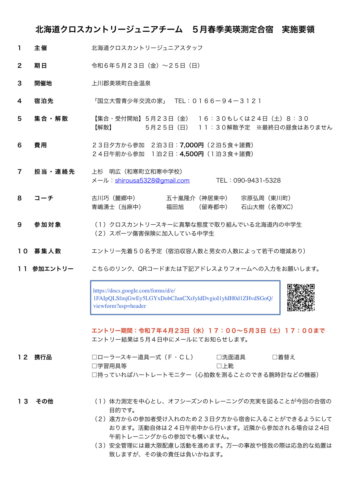 5月春季美瑛測定合宿 2025-04-21 最終更新日時 : 2025-04-21 Furukawa 例年行っている5月の測定合宿の要項です。期日は、令和7年5月23日(金)~25日(日)です。 多くの参加者を待っています。 IMG_2575ダウンロード FacebookBluesky